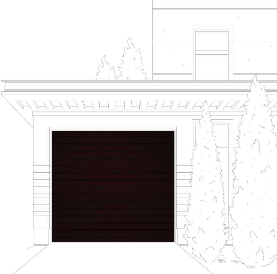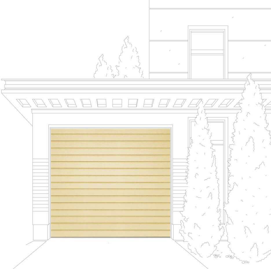 Сэндвич-панель визуально разделена тонкими частыми полосами. Внешне она напоминает доску для ручной стирки. Это очень практичное решение, так как оно позволяет скрывать мелкие повреждения лакокрасочного покрытия, сохраняя эстетичный внешний вид секционных ворот на долгие годы.