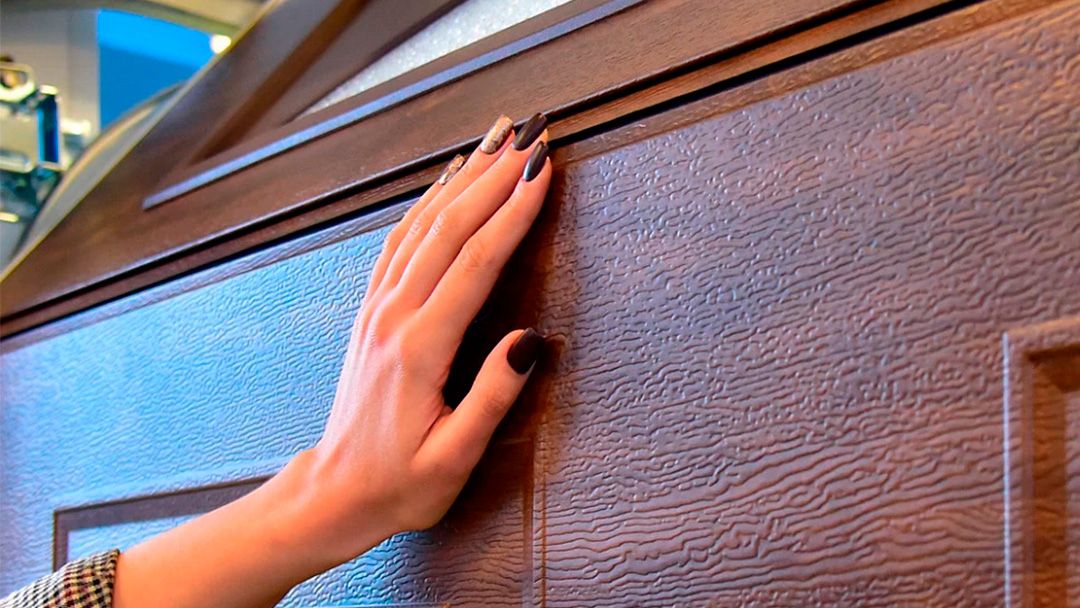 Imprimarea în relief woodgrain imită vizual și tactil lemnul. Porțile din panouri sandwich cu o astfel de textură își păstrează mult timp aspectul estetic — pe ele nu se văd zgârieturi mici, urme de lovituri și uzură.