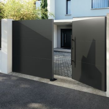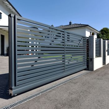 Помимо стационарных ограждающих конструкций компания BERTAM откатные и распашные ворота на основе алюминиевого профиля. Возможность использования различных профилей для изготовления створок позволяет органично вписать их в дизайн всего ограждения.