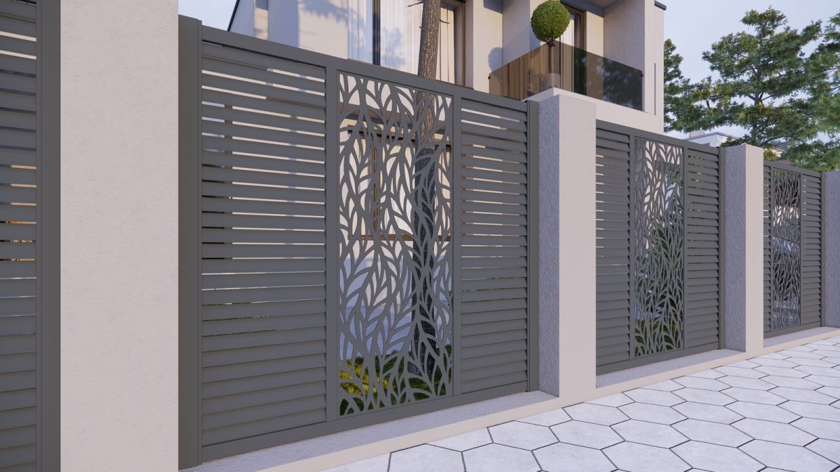 Ограждение из алюминиево профиля 80х20 , укрепленные каркасом из стали 80х80, длина одной секции 2 метра и высотой 1,8 метра.